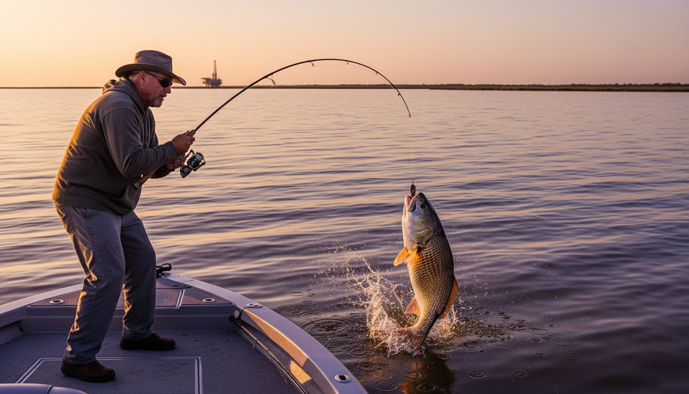 Targeting mature, breeding-age fish requires a shift in gear and location. Between September and November, massive schools of bull reds congregate near the South Marsh Island lighthouse and the shell reefs scattered across the Gulf edge. You’ll need 40 pound braided line and a medium-heavy rod to handle these beasts. Success hinges on tidal movement; a falling tide of 1.2 feet or more flushes bait out of the marsh, creating a feeding frenzy. Imagine the adrenaline surge as a massive 40-inch redfish explodes on a surface-walking topwater plug in three feet of water. It’s a heart-stopping moment that defines the thrill of Louisiana fishing.