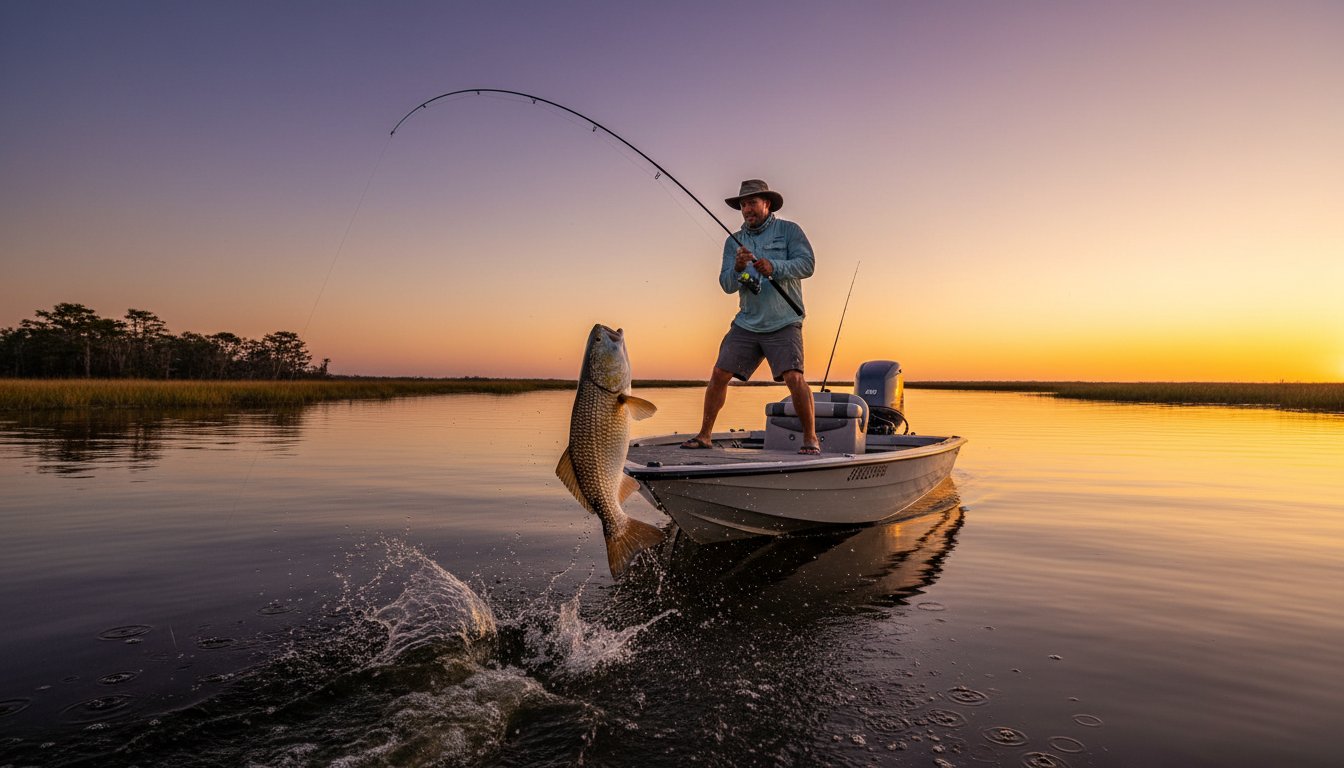 - Winter (Dec-Feb): The water clears up, concentrating massive schools of Redfish in shallow marsh ponds. This creates perfect conditions for sight-fishing a true monster.